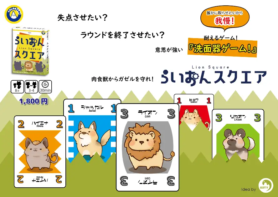 カードの1手1手に意思が出るゲームです。列を取らせたいプレイ、終わらせたいプレイなど、思惑が見えるゲームです。困ってる人を見るのが楽しい、切り抜けるともっと楽しいカードゲームです。