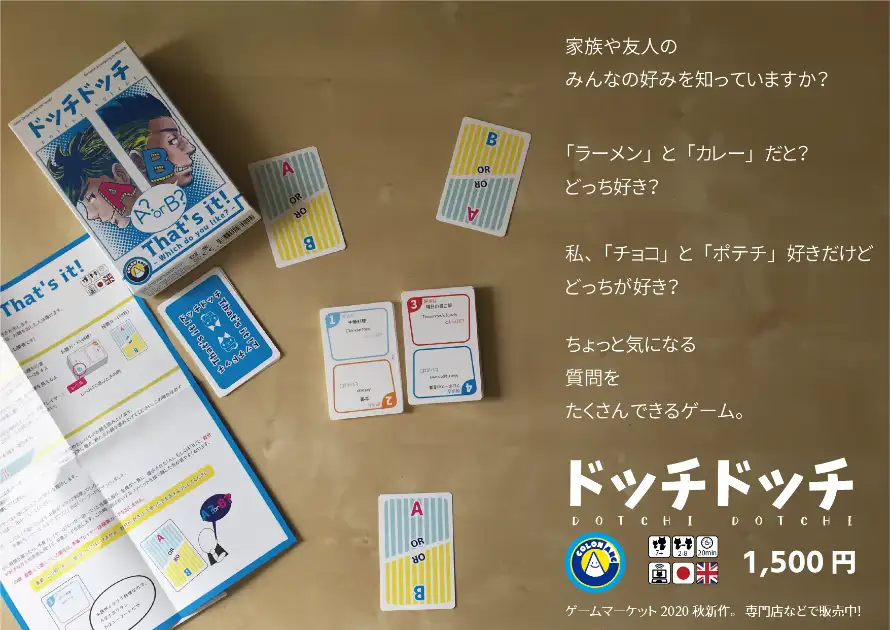 その後、全員が同時にAかBを出します。ぴったり半分に分かれていれば、お題を言った人に得点が入ります。