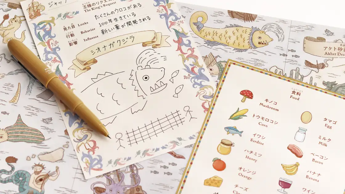 冒険家は、王様がこっそり選んだ怪物を地図の中から探し、絵を描いて当てることを目指します。ぴったり当てることができれば、冒険家と王様の勝利です。また特別賞として、捕まえた成果に応じて、いくつかの賞が用意されています。絵と言葉をつかって、最後にすばらしい発表を行いましょう。
