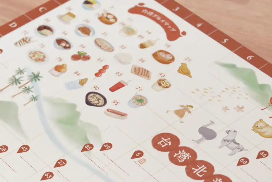 今回の旅のテーマは食。屋台で台湾料理の食べ歩きをしながら、台北の街の散策を楽しみます。本の中で屋台をめぐりながら、「台湾グルメマップ」を完成させていきましょう!