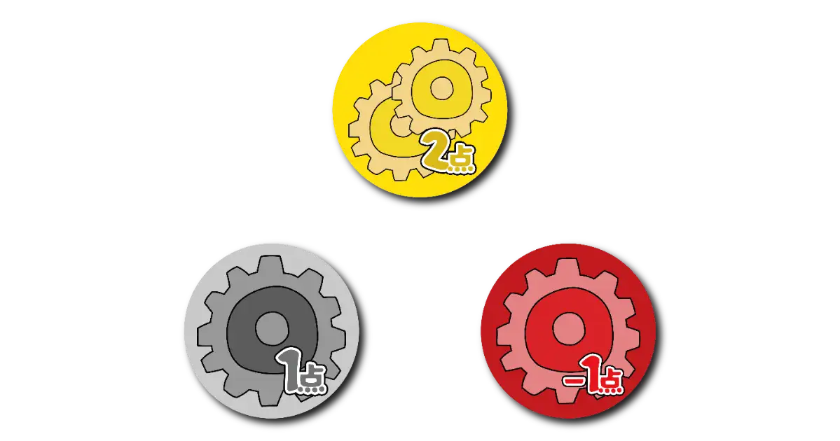 ② チップとサマリーカードを配ります。(2点チップ×1 / 1点チップ×2 / -1点チップ×2)