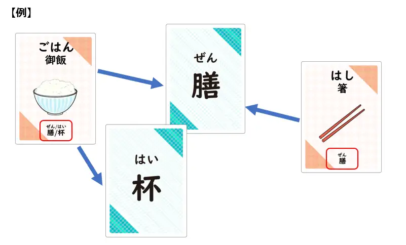 「ご飯」を「膳」の組み合わせで取ろうと思ったら、「箸」と「膳」で取られてしまい、「杯」を探すことになる・・・そんなちょっと記憶がよじれるような変わった感覚が味わえる神経衰弱です。