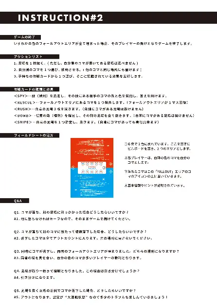 大切なのは、相手の場にも自分の色のコマがいる事。減りゆくコマと足場から徐々に見える思惑を読み、勝利を掴み取りましょう!